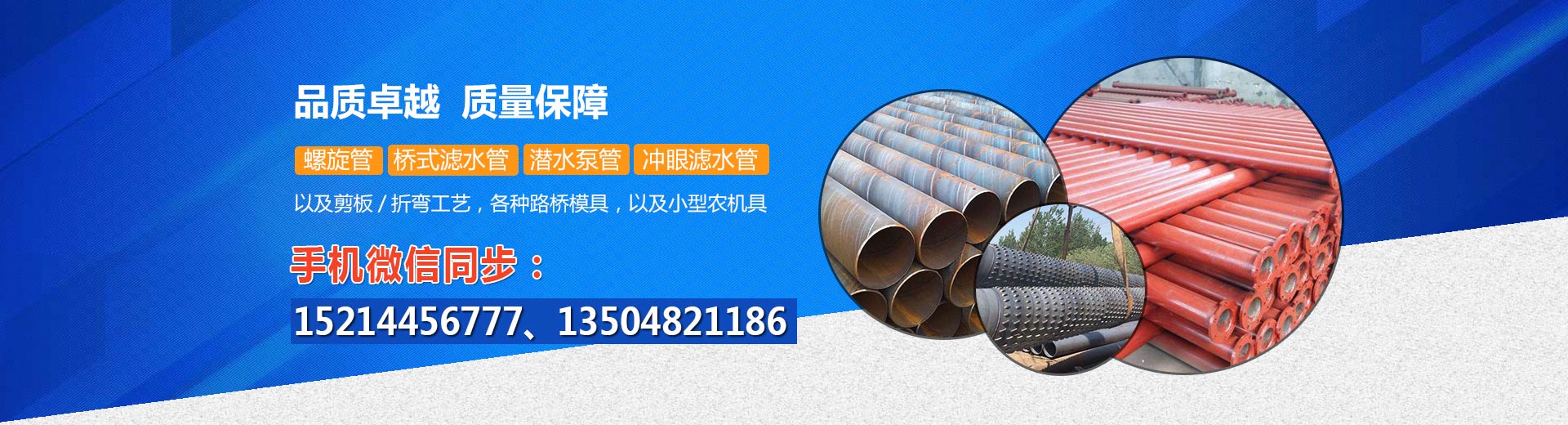 龍江縣錦華管業(yè)有限公司,位于黑龍江省齊齊哈爾市龍江縣黑崗鄉(xiāng)黑崗村。公司專(zhuān)業(yè)生產(chǎn)各種規(guī)格的螺旋管,橋式濾水管,潛水泵管,沖眼濾水管,以及剪板、折彎工藝,各種路橋模具,以及小型農(nóng)機(jī)具。是集設(shè)計(jì)、生產(chǎn)、銷(xiāo)售、施工、售后服務(wù)為一體的企業(yè)。
